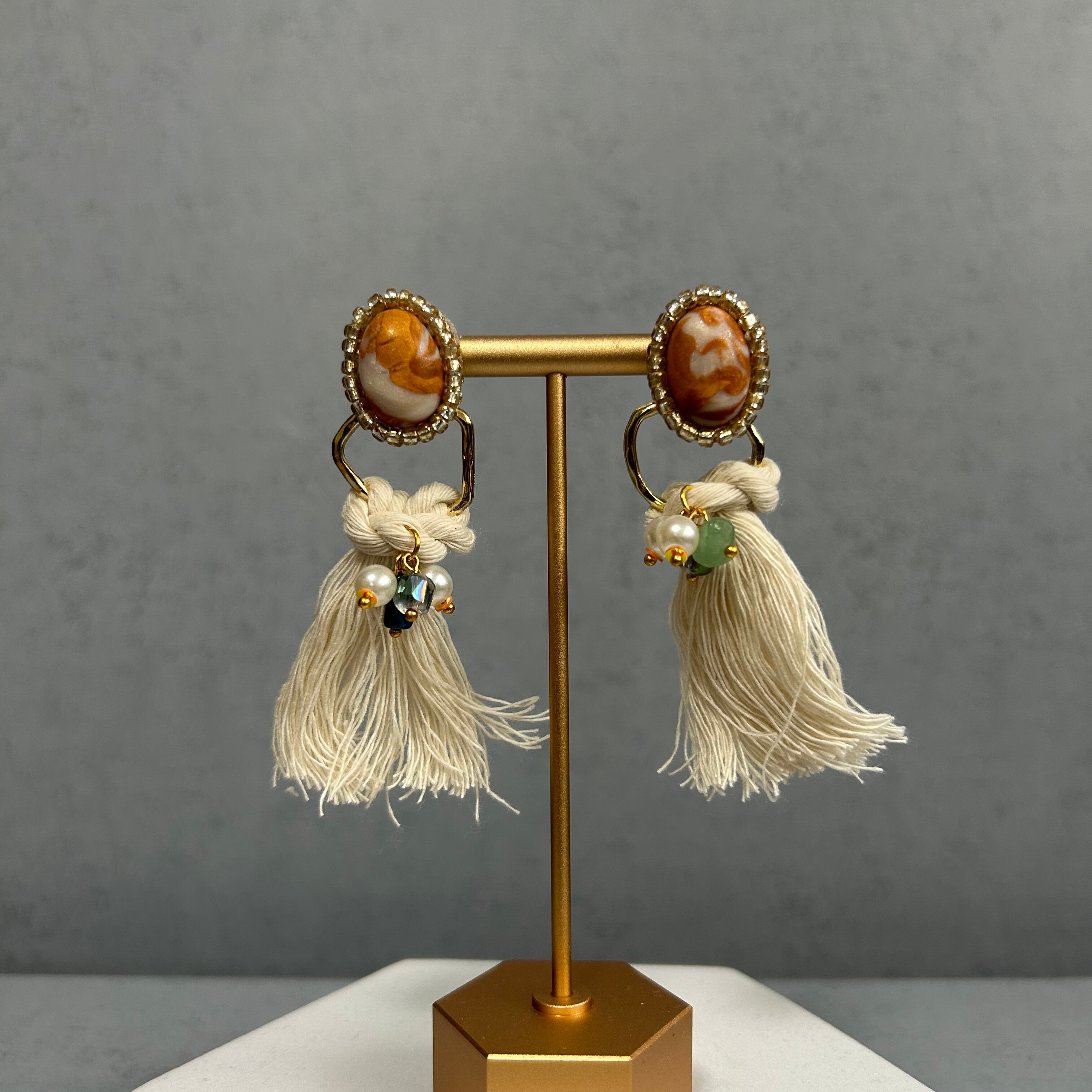 タッセルをつけると、一変して個性のあるアクセサリーにななります♡